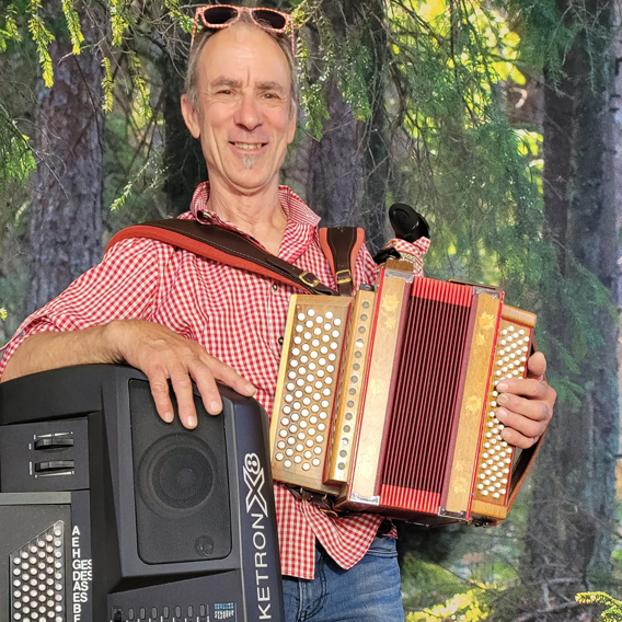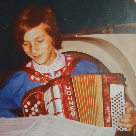 Dann war der grosse Moment da, ich hielt mit leuchtenden Augen meine «Hohner-Piccolo» in den Händen. Von da an ging ich 5 Jahre lang in den Akkordeon-Unterricht. Zuhause spielt ich oft mit meinem Vater und den beiden Brüdern, welche der Blasmusik frönten. Während meiner Berufslehre als Schreiner, spielte ich zusammen mit gleichaltrigen Freunden in einer kleinen Formation.